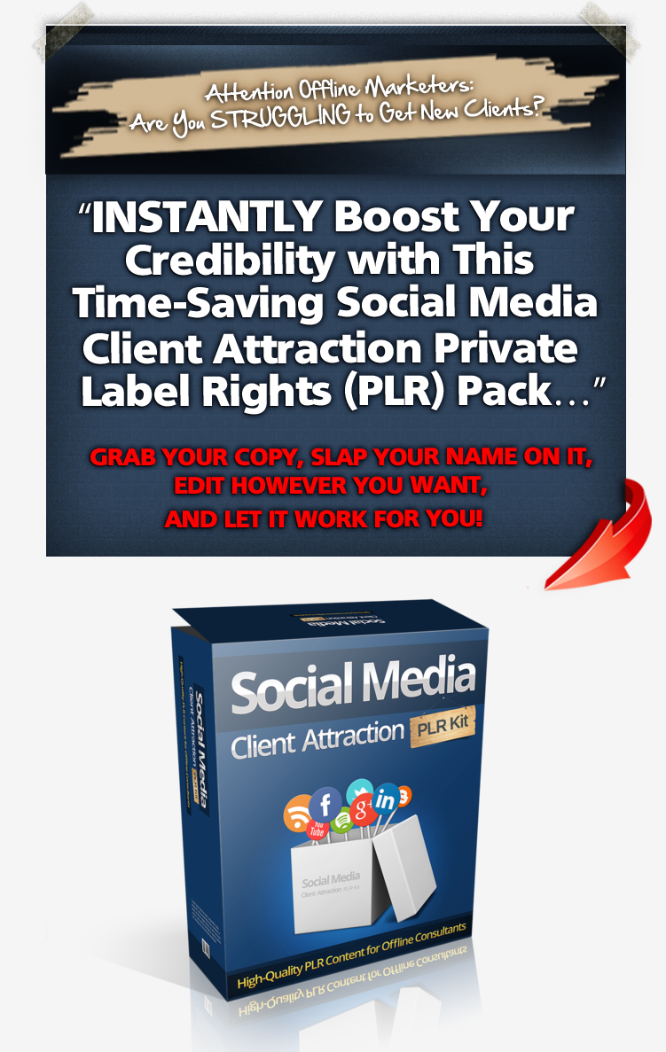 This Social Media Client Attraction PLR pack was created to help you as an Offline Consultant reach out to business owners who need your services.
